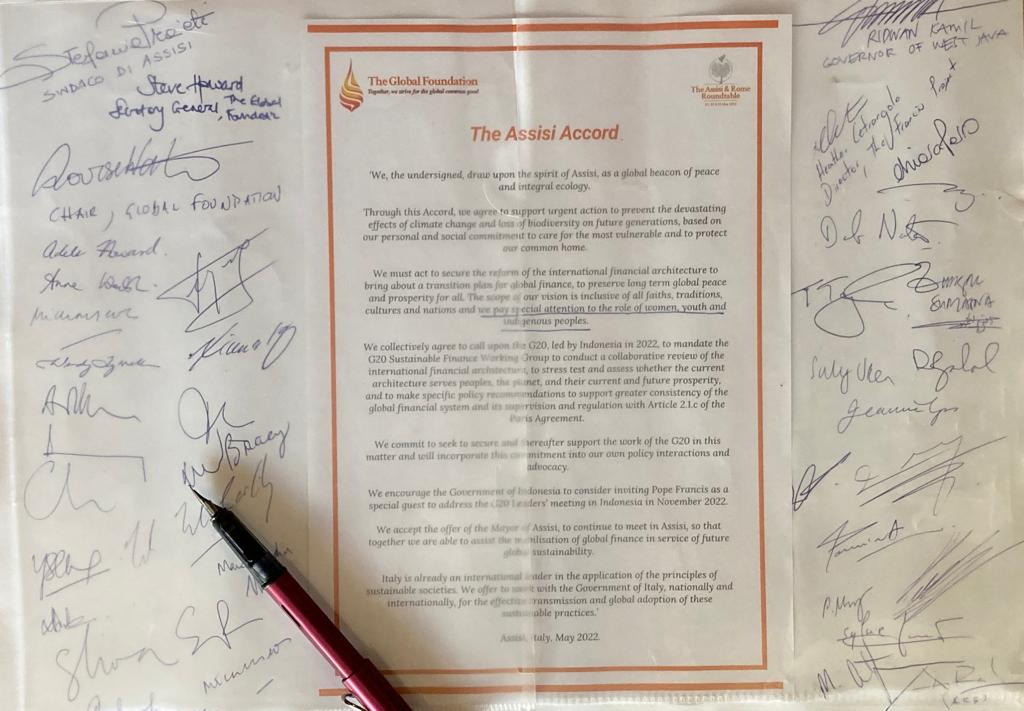 The Assisi Accord was the main outcome from the three days of the 2022 global roundtable. This is an historic, signed call to action on climate change and related matters, requiring significant reform of the international financial system so that genuine and measurable progress towards the sustainability of the planet will be possible.